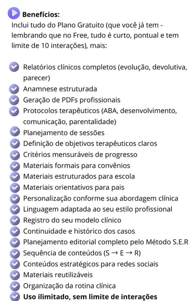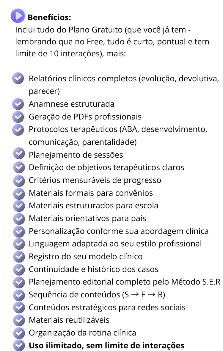 Você já é usuário do plano gratuito, aproveite mais do TERAPEUTA AI